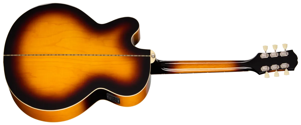 We also included other features that give the J-200 Studio EC even more vintage-style visual pizazz, including an iconic J-200 style tortoise shell-colored pickguard with classic two-color J-200 graphics, Epiphone Deluxe tuners with Keystone buttons, and a bound 60s Kalamazoo-style headstock with the Epiphone logo and Gibson Crown proudly displayed in mother of pearl. The J-200 Studio EC comes with Fishman® electronics, including an S-Core under-saddle pickup and Fishman Presys ™ II preamp with side-mounted volume, bass, treble, and phase controls. It also has a convenient built-in electronic tuner that makes tuning up quick and easy. The Epiphone J-200 Studio EC has a gloss finish and is offered in two vintage-inspired colors-Natural and Vintage Sunburst. Both right-handed and left-handed versions are available.